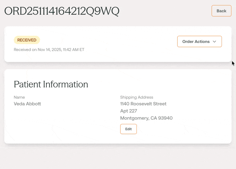 You can now update an order’s address so long as it is not already shipped (or if shipping is not in process). In the same request you can also choose to update the patient’s address on-file, if the change is permanent.