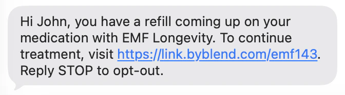 Blend can now send refill reminder SMS to opted-in patients. One reminder will be sent for all medications; patients with multiple medications will not receive multiple texts.Reminders can be optionally limited only to prescriptions with remaining refills; or you may send reminders for medications that are running out, even if no fills remain. (A new prescription will still be required.)Finally, refill messaging can be customized to your brand.
